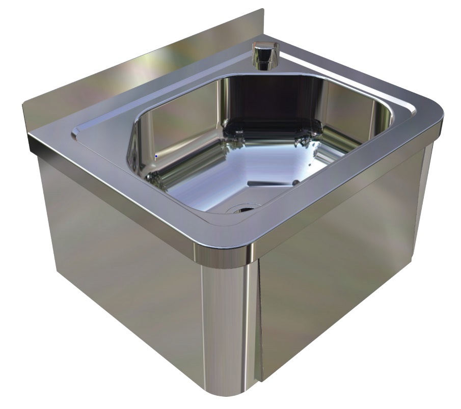 The BRITEX Stainless Steel Compact Knee Operated Hand Basin is a compact sized version of the popular, commercial sized Knee Operated Basin. Activation of the tap is done by leaning against the front push panel, eliminating the need for electronic / mains powered tapware in areas where avoiding cross-contamination is paramount. Supplied pre-plumbed and easy to install, the Compact Knee Operated Basin comes complete with pressure limiting valve, 40mm waste outlet and choice of low-level or goose neck type spout.